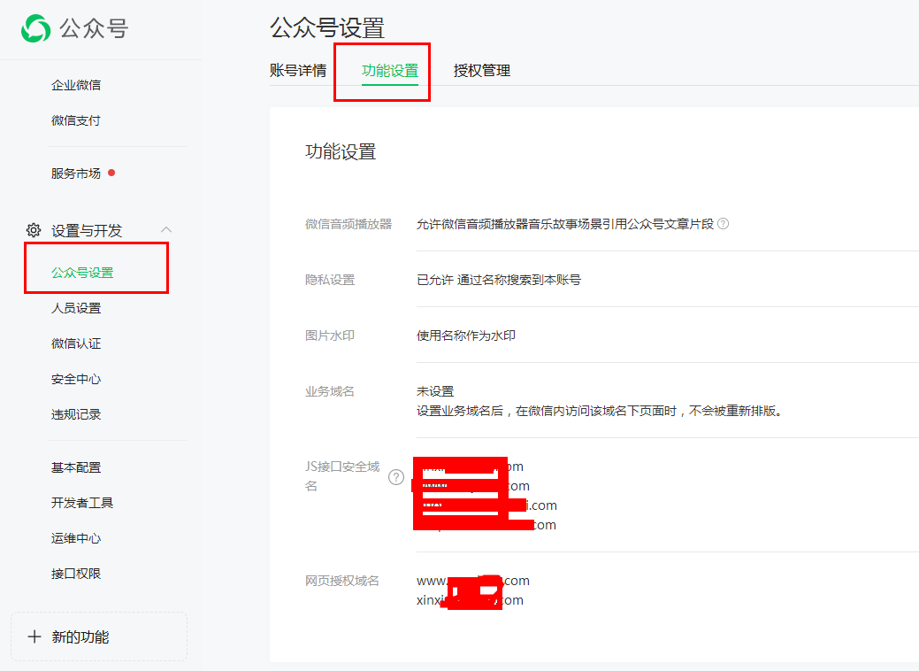 设置与开发 - 公众号设置 - 功能设置填写你的网页授权域名