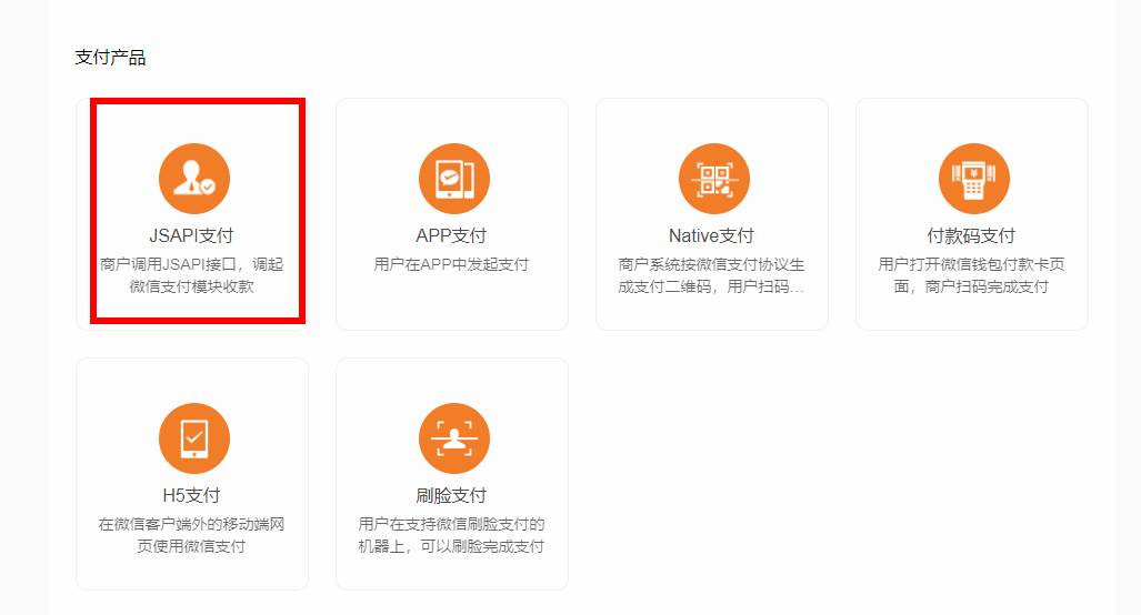 登录后,需先开通对应支付产品,JSAPI支付主要用于在微信端打开H5网页时发起支付,开通路径如下(参考图示):